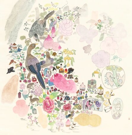 Wang MengSha engages with the lineage of figure painting, blending it with folk narrative sensibilities and a playful, contemporary aesthetic. In works like Little Deity and Looking Forward to Spring, her dreamlike scenes are populated by charming figures, rendered in bold color and delicate line. While referencing traditional motifs and compositional rhythms, Wang’s approach feels spontaneous, intuitive, and emotionally resonant—translating cultural memory into a fresh visual lexicon.