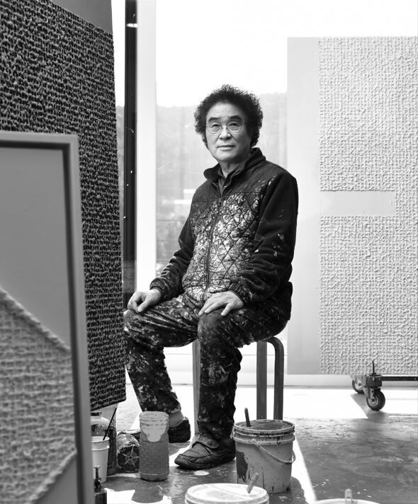 Lee Hee-don's relationship is a work that weaves 73 years and 639,918 hours of life on canvas. It is a work that allows you to meditate on relationships through paints piled up by weaving straight and neat threads.