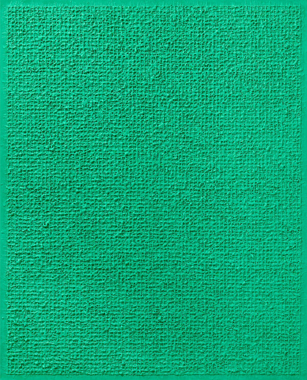 The painter once stated there were no other ways to express ‘match’ with conventional methods or paints. Colors mixed with paper mulberry fibers and well organized shapes of grid on canvas with his own hands embody the painter’s art and are reckoned as his brand and signature.