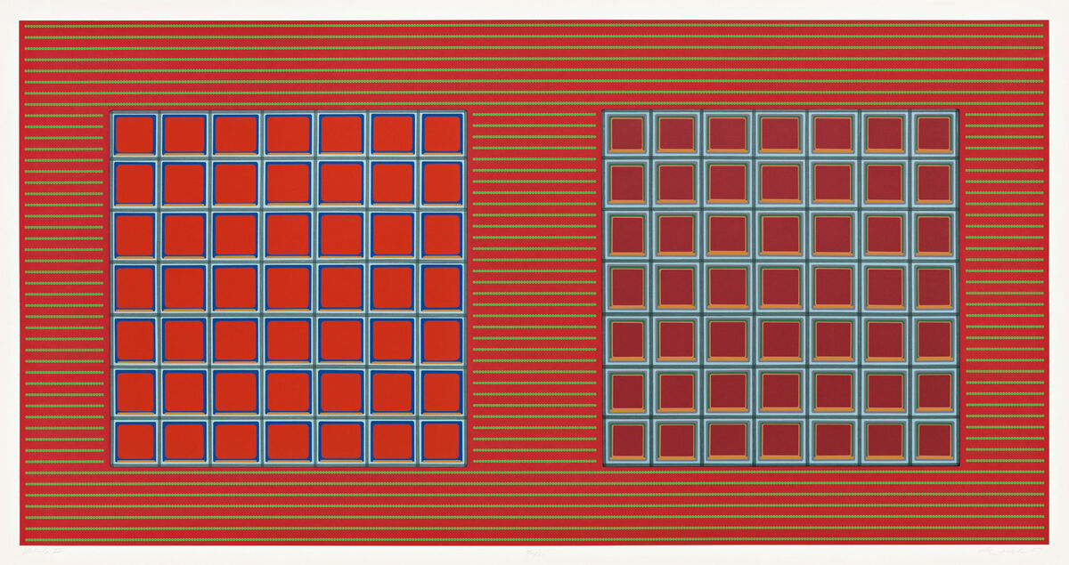 Pace Prints is pleased to present a selection of prints by Dan Walsh on view from June 18 – July 19 at 536 West 22nd Street. Working at Pace Prints between 2007-2014, Walsh realized these works using a variety of printmaking techniques, including intaglio, screen printing, woodcut, and monoprinting, to achieve his perception-shifting geometric patterns. Using a systematic, grid-based process, Walsh invokes the models of seriality, materiality, and modularity set forth by the Minimalists of the 1960s and 1970s. While the works are defined by their color, patterns, and usage of negative space, they also incorporate organic line and irregular gesture within an otherwise formal pursuit. The artist allows ideas of Minimalism and material investigation to inspire, but not limit, his printmaking practice.