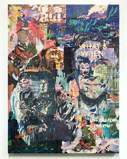 Drawing from an archive of screenshots of the artist's personal YouTube homepage, the work functions as a form of self-portraiture revealing what the algorithm perceives of one's identity. The piece examines the proliferation of "life advice" content that markets philosophies and optimization techniques to young viewers. Through collaging and redrawing of these elements, the work ponders how algorithmic curation infiltrates our consciousness during countless hours of screen time, becoming inseparable from modern identity formation.