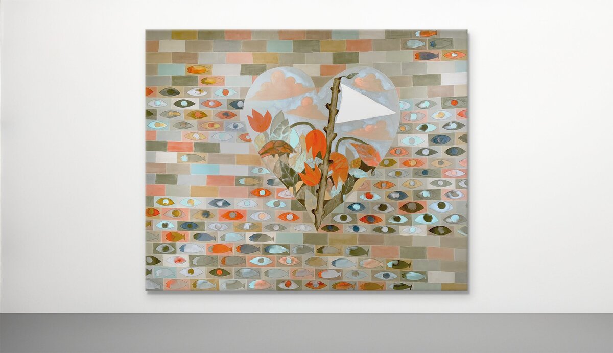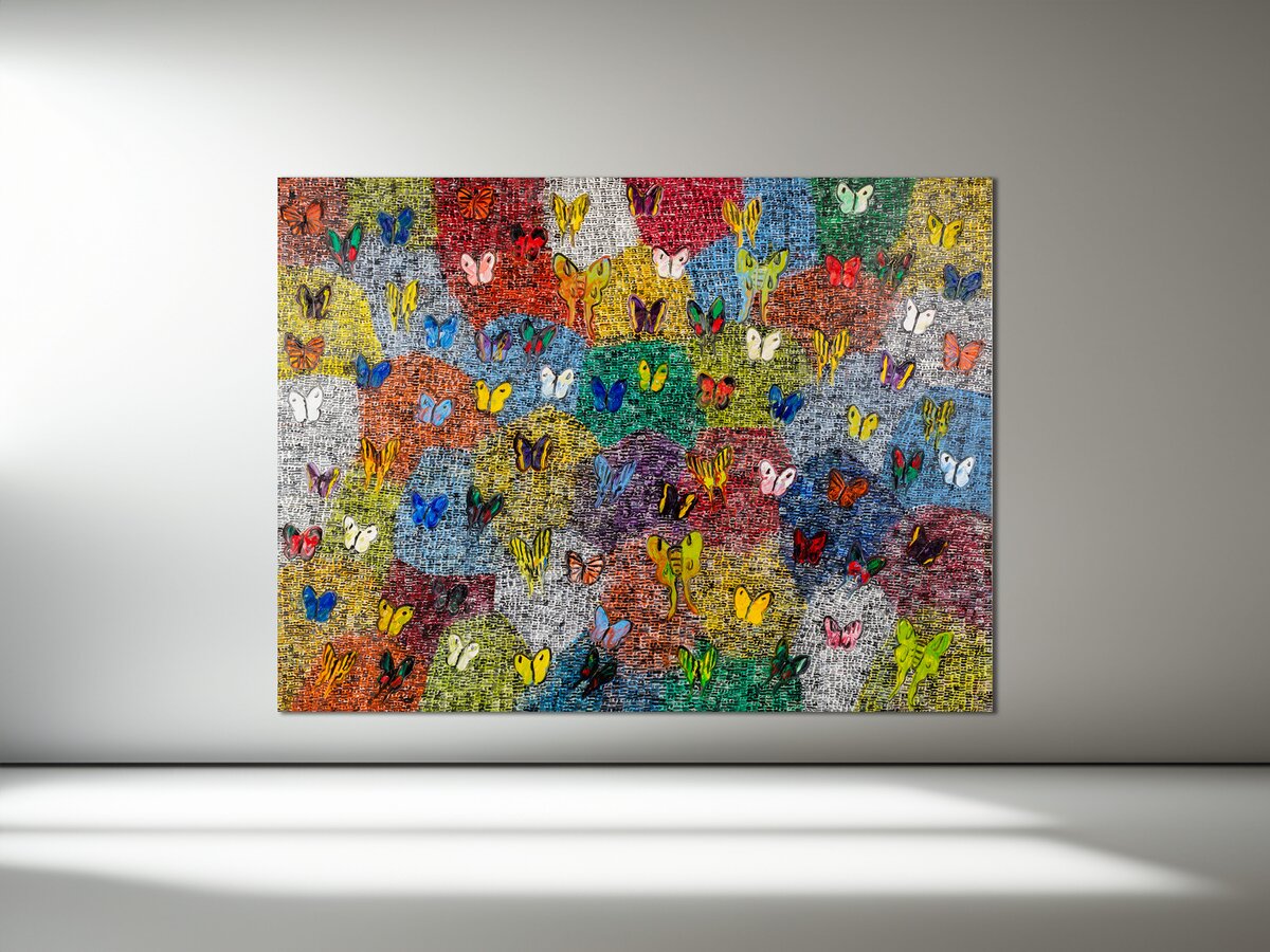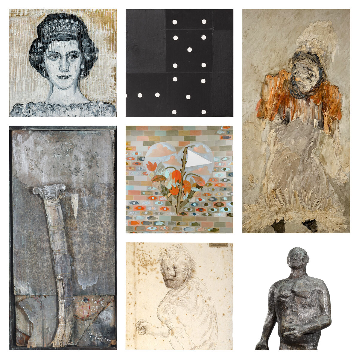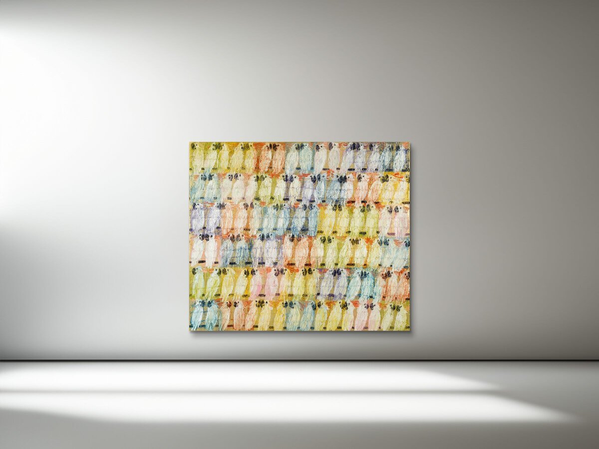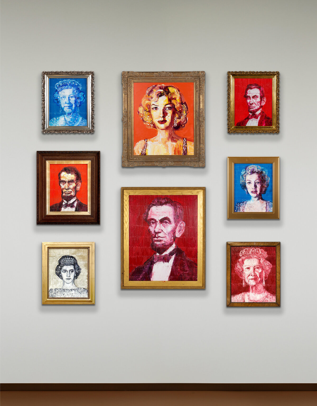 Slonem portrait wall (artworks scaled to relative dimensions)