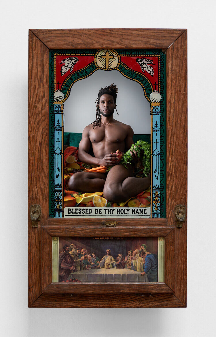 Individually titled 'The Fall of Man (Sin), Act of Contrition (Shame), The Revelation (Self-acceptance)', the self-portraits confront colonial Christianity’s violent history while reclaiming Queer embodiment as divine.