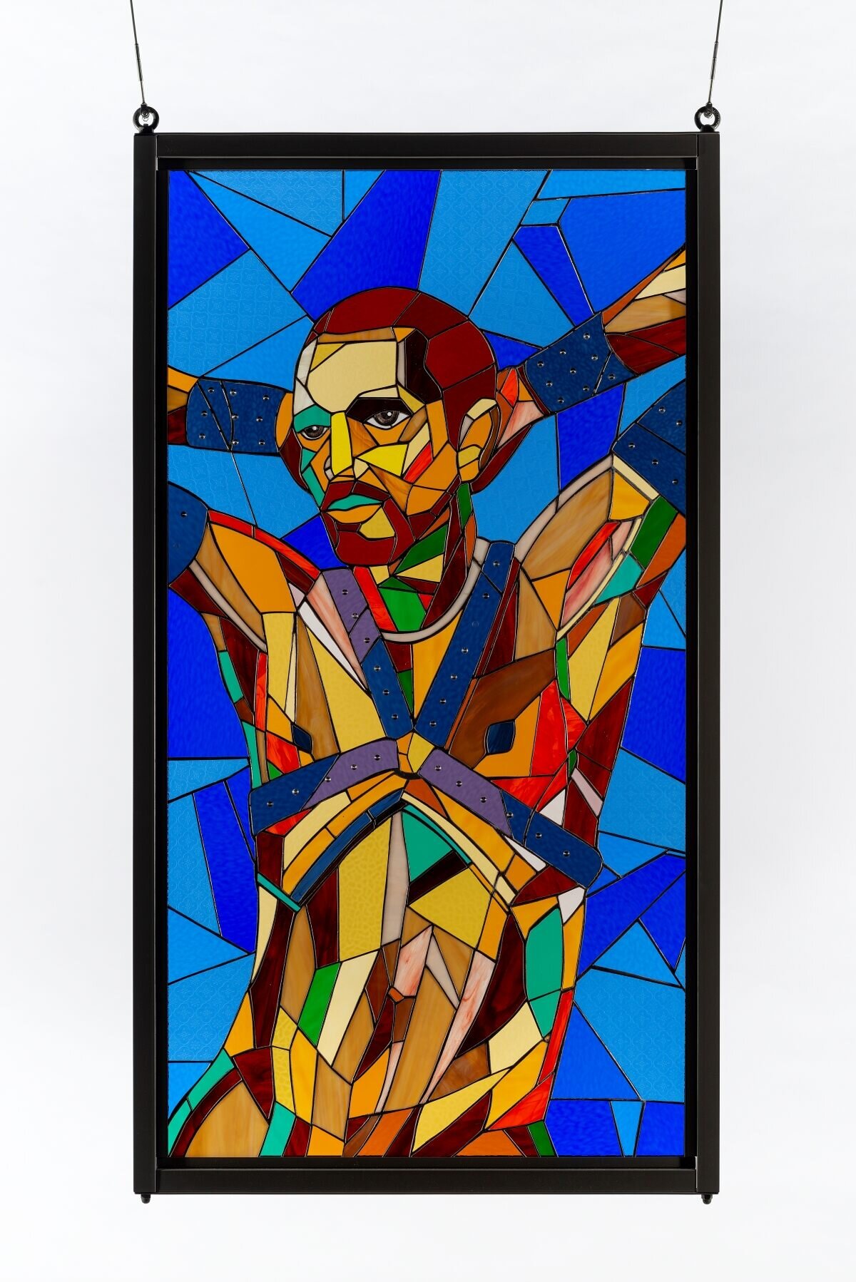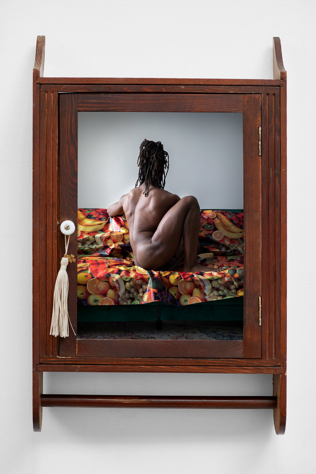 This withholding interrogates the racialised and gendered economies of desire, calling keen attention to the phallus as a site of both fixation and critique. Drawing on African traditions, camp aesthetics and the expansive history of fetish culture, Ruga’s works offer us a flamboyant glimpse into the artist’s self-devised pantheon of Queer saints and mythological avatars.