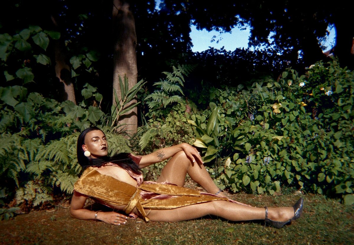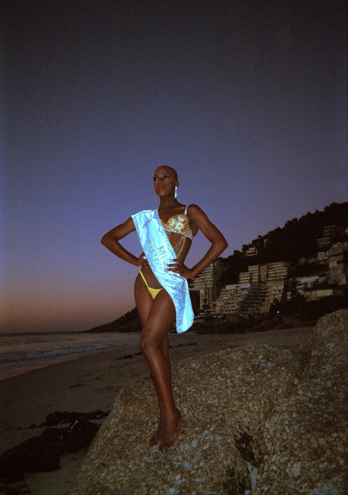 The artist regards the work as an extension of drag performance – a ritualised spectacle of performing the self – referencing different aspects of their identity and heritage: indigenous (Khoi and San) cosmologies, Queer rites of passage, contrasting cultural styles and belief systems.