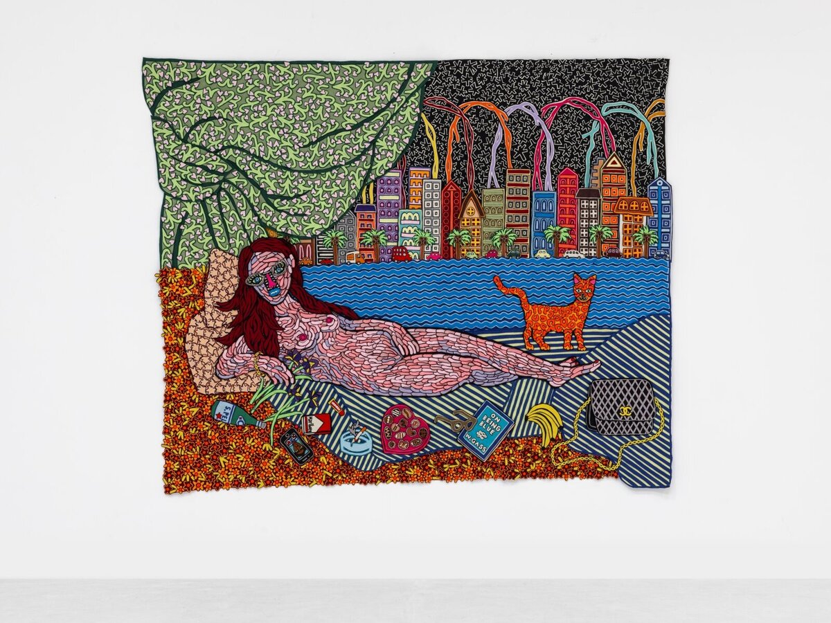 Paulsen also toys with notions of excess in a sumptuous felt collage that reimagines Titian’s 'Venus of Urbino' as a “regular girl” surrounded by the accoutrements of privileged womanhood.