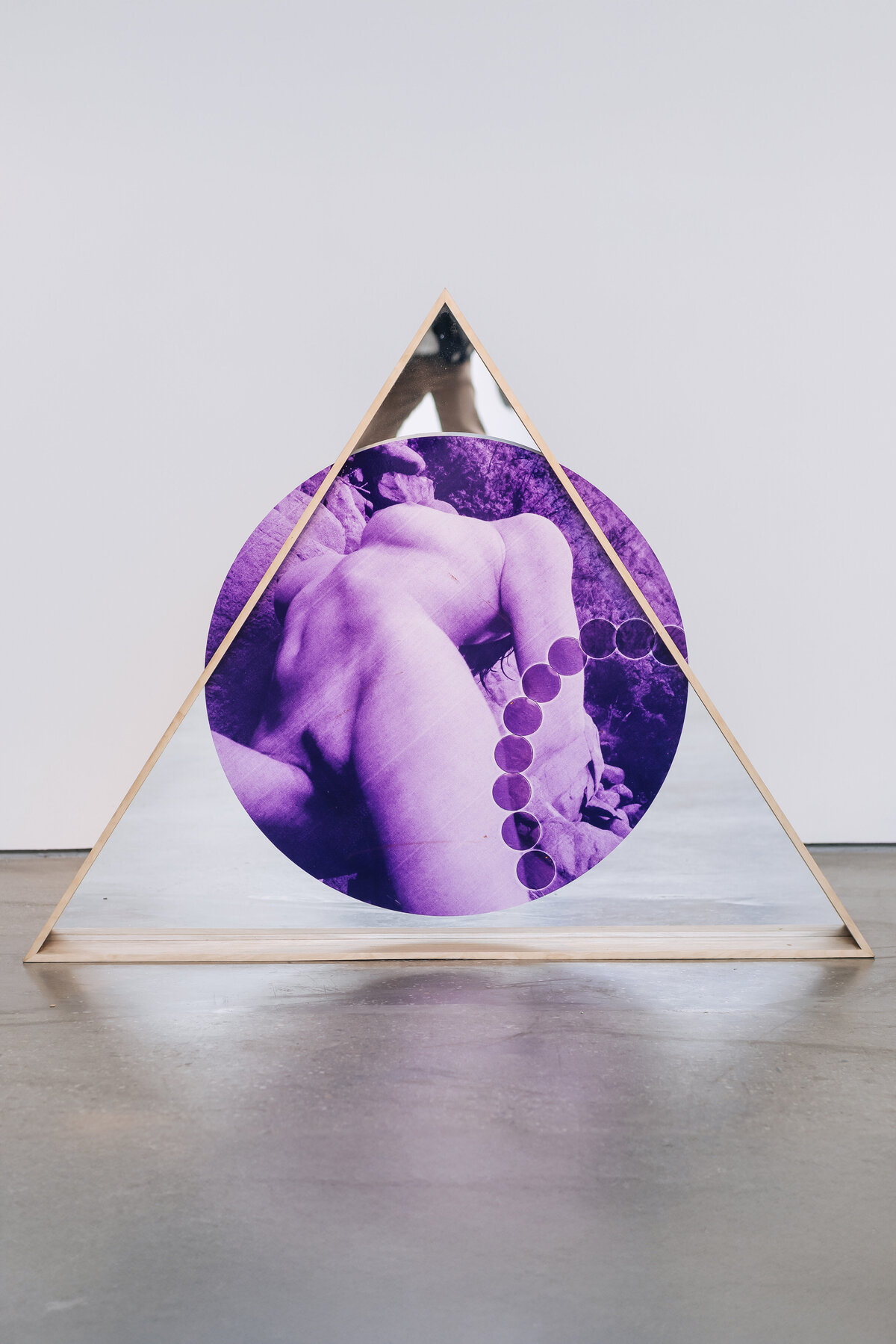 In Colombo’s photographic self-portraits, the body is arranged in artful compositions framed by elements including sacred geometry, colour and reflected light. Approaching the female figure as a study in abstract form, her intervention invites us to consider its metaphysical aspects and the interrelation between matter and spiritual energy.