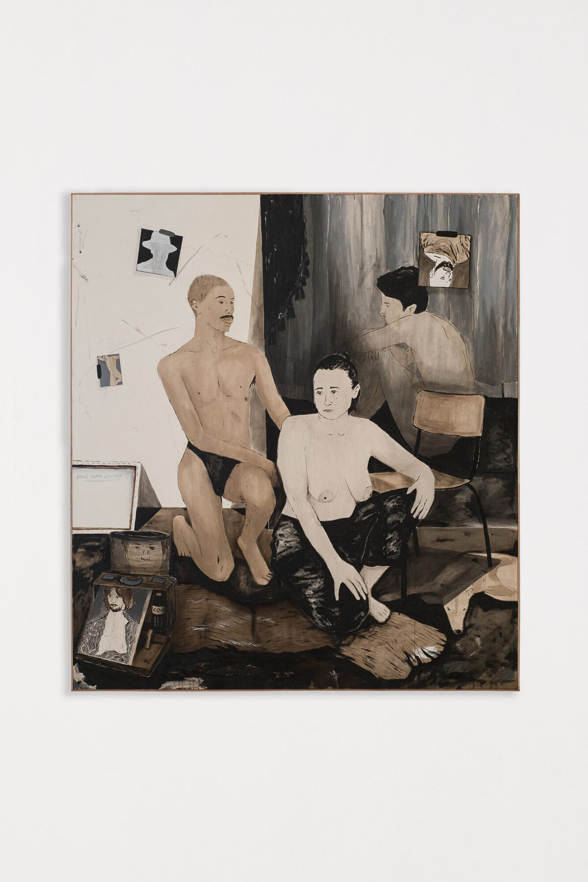The devotional portrait is further reimagined in Brett Charles Seiler’s large-scale painting, 'Shakil and Laura (To Rub Hurt Feelings)', a cinematic window into the community of friends, chosen family, lovers and former lovers that animate his world.