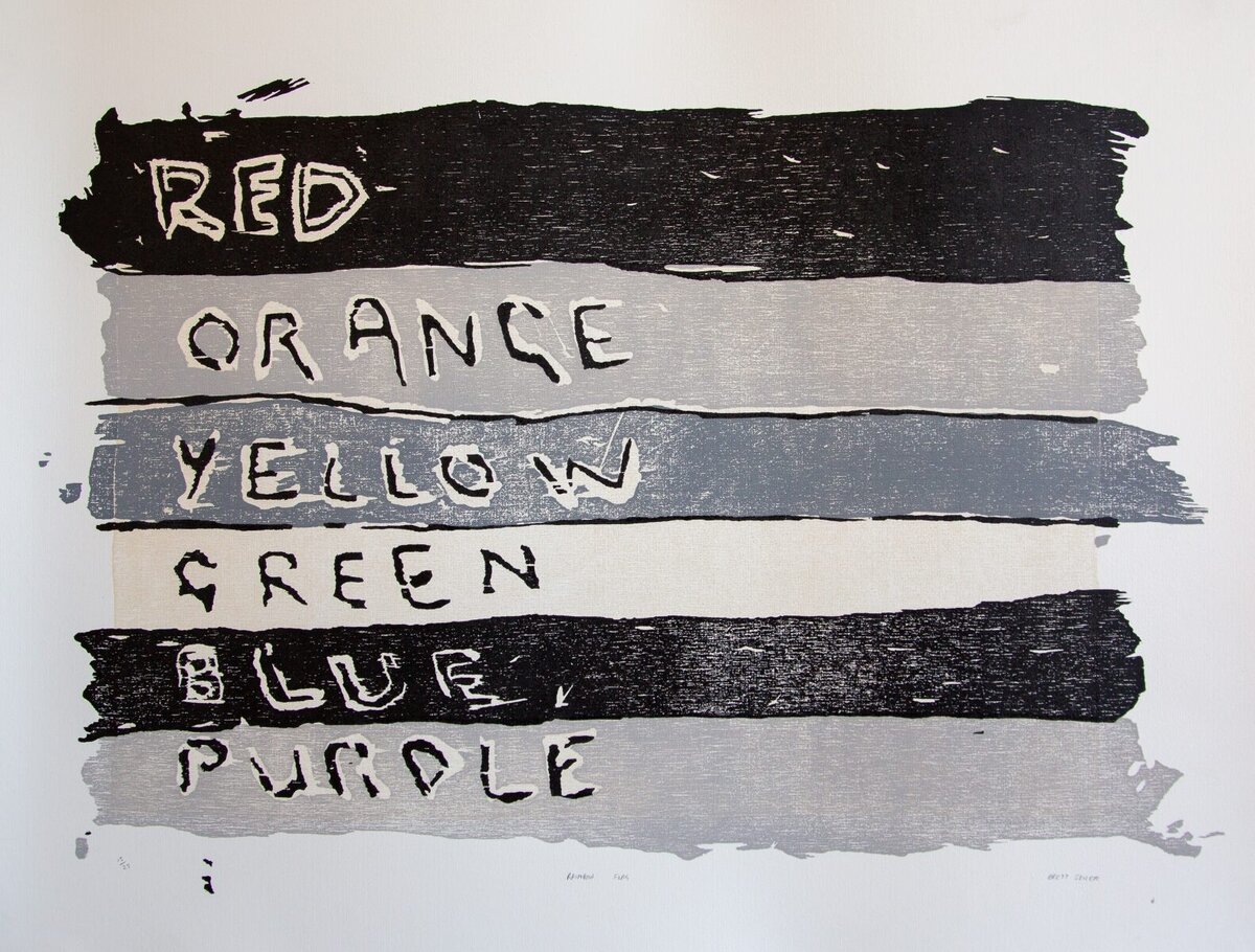 Drained of its usual vibrancy – the gay pride colours signified only through text – Seiler’s desaturated iteration speaks to the loss, grief and uncertainty faced by the LGBTQIA+ community.