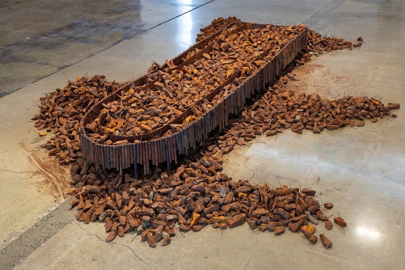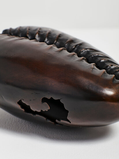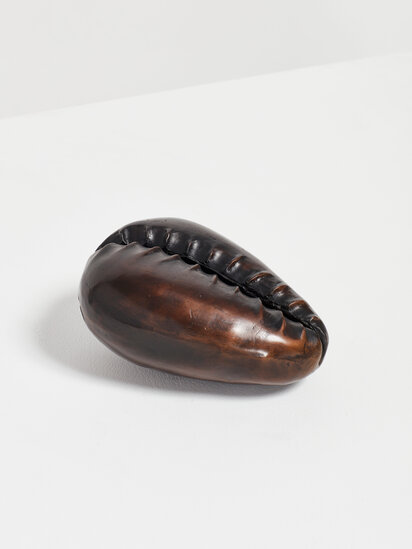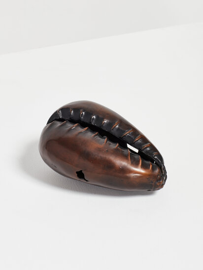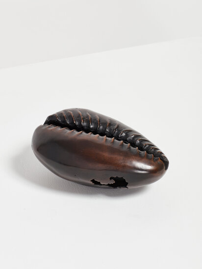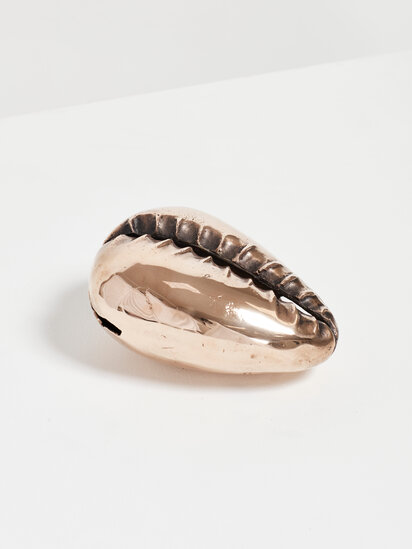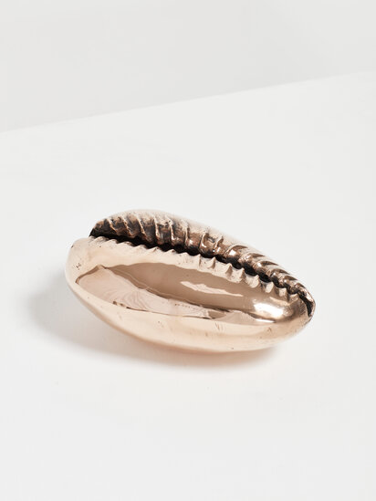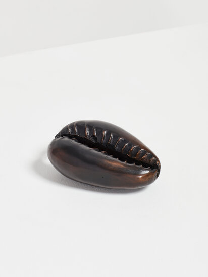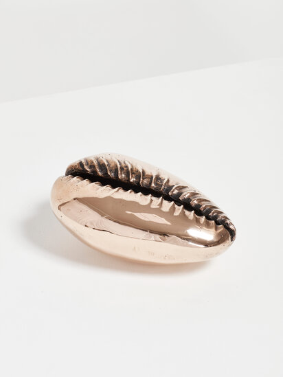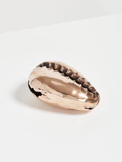In The value of my dreams will not drown me, the weight of 48 bronze cowrie shells equates to Oluseye’s total body weight. The value of each sculpture is calculated in