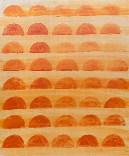 Nina Wengel reflects: “My interest in this subject emerged after a rather tricky operation and a psychosis, which led to a haunting fear of death and the afterlife. (…) I made various drawings and collages during my stay, and one of them I have been sticking to ever since – a repetition of a setting sun, visualized as a half-circle. Since then, I have kept the habit of occasionally reverting to this motif and the rather impossible attempt to create an eternity.”
