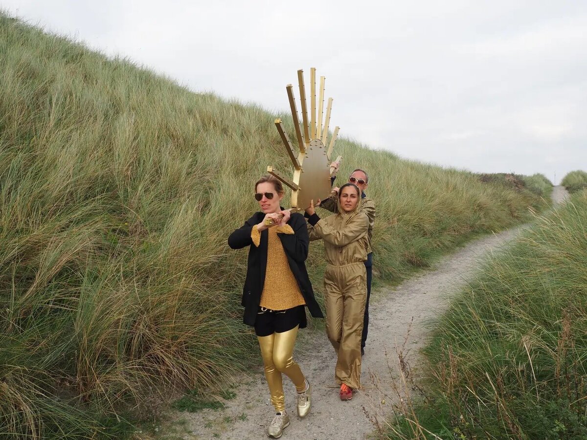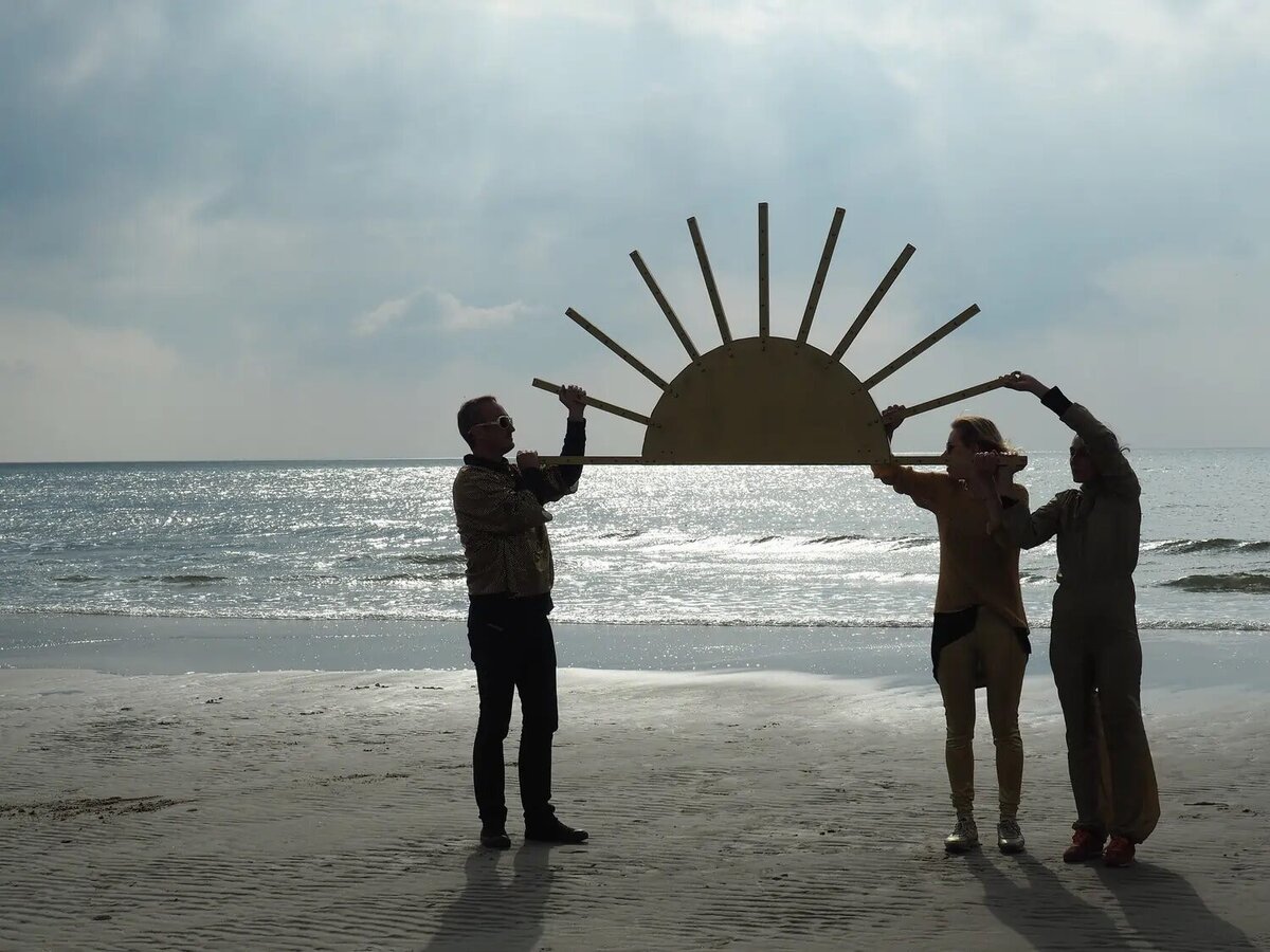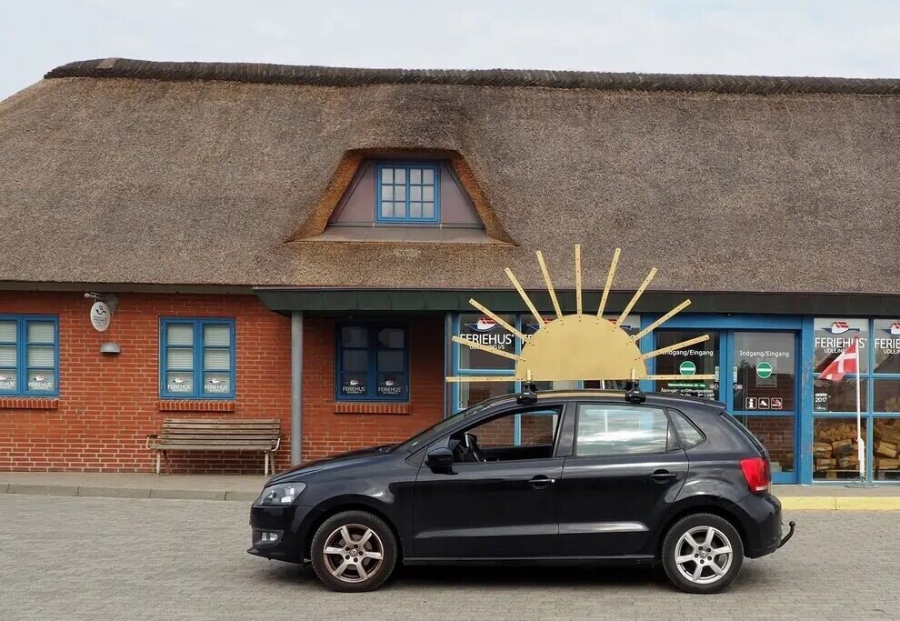 In "The Sun Chariot", Nina Wengel transports a large sun sculpture by car to the beach, referencing the horse-drawn sun disc from Nordic mythology believed to travel across the sky. Through this act, she delivers a wry commentary on modernity and myth, while also engaging with themes of cyclical time and divine presence.