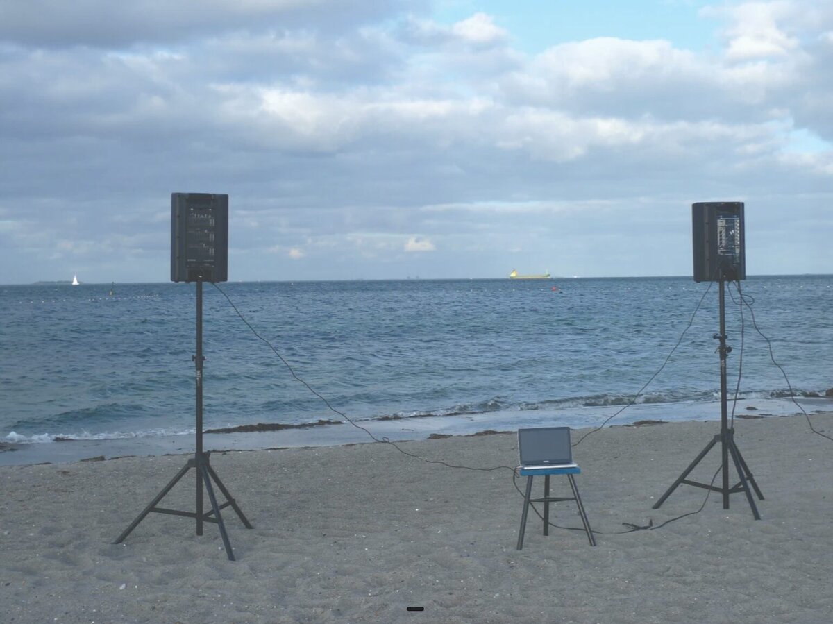 "Healing the Water" is an ongoing one-day participatory performance, first staged in 2011 at Amager Beach in Copenhagen. Here, Nina Wengel invites participants to suggest songs, which are played through speakers and broadcast directly toward the sea. Each performance is based on a unique playlist, serving as a collective gift to the ocean – conveyed through the same medium that often harms it: human-made sound.