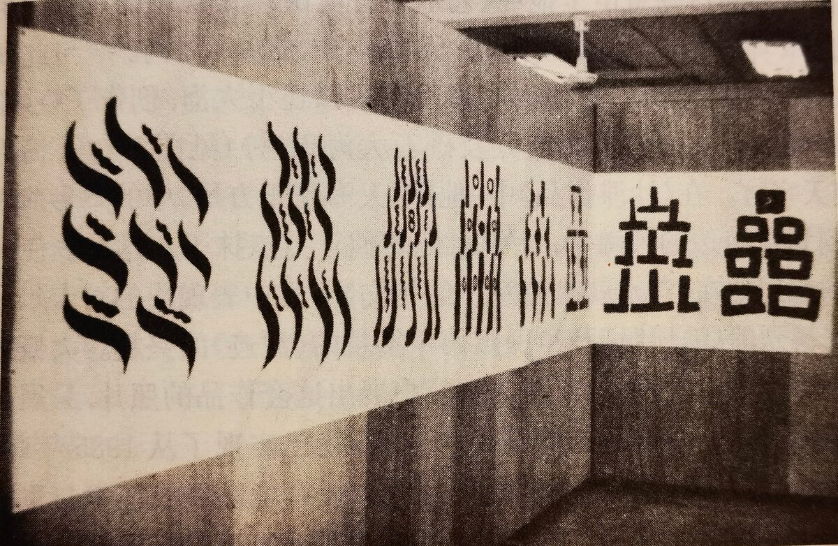 This series begins with soft, S-shaped curves evoking ocean waves. Gradually, the waves transform into squares. This transition from the organic to the rigid echoes Mondrian’s simplification of a tree into a grid pattern, or Malevich’s “Black Square,” where form is reduced to its essence. Here, Lin Chun’s fascination with impulsivity and chaos, embodied by the sea, merges with his interest in rational expression. The artwork was destroyed during the Xiamen Dada art-burning incident of 1986.